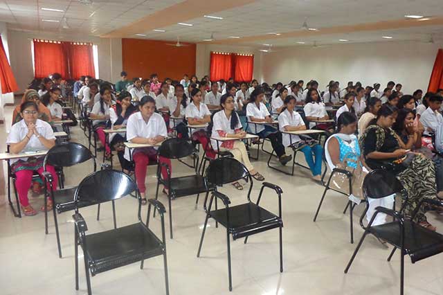 The auditorium is on the second floor. It has a area of 1100 sq.ft. area with seating capacity of 250. It has all the audio visual aids. Small scale programs like oration, inductions, workshops, seminars, external faculty lectures and academic symposiums are held here.